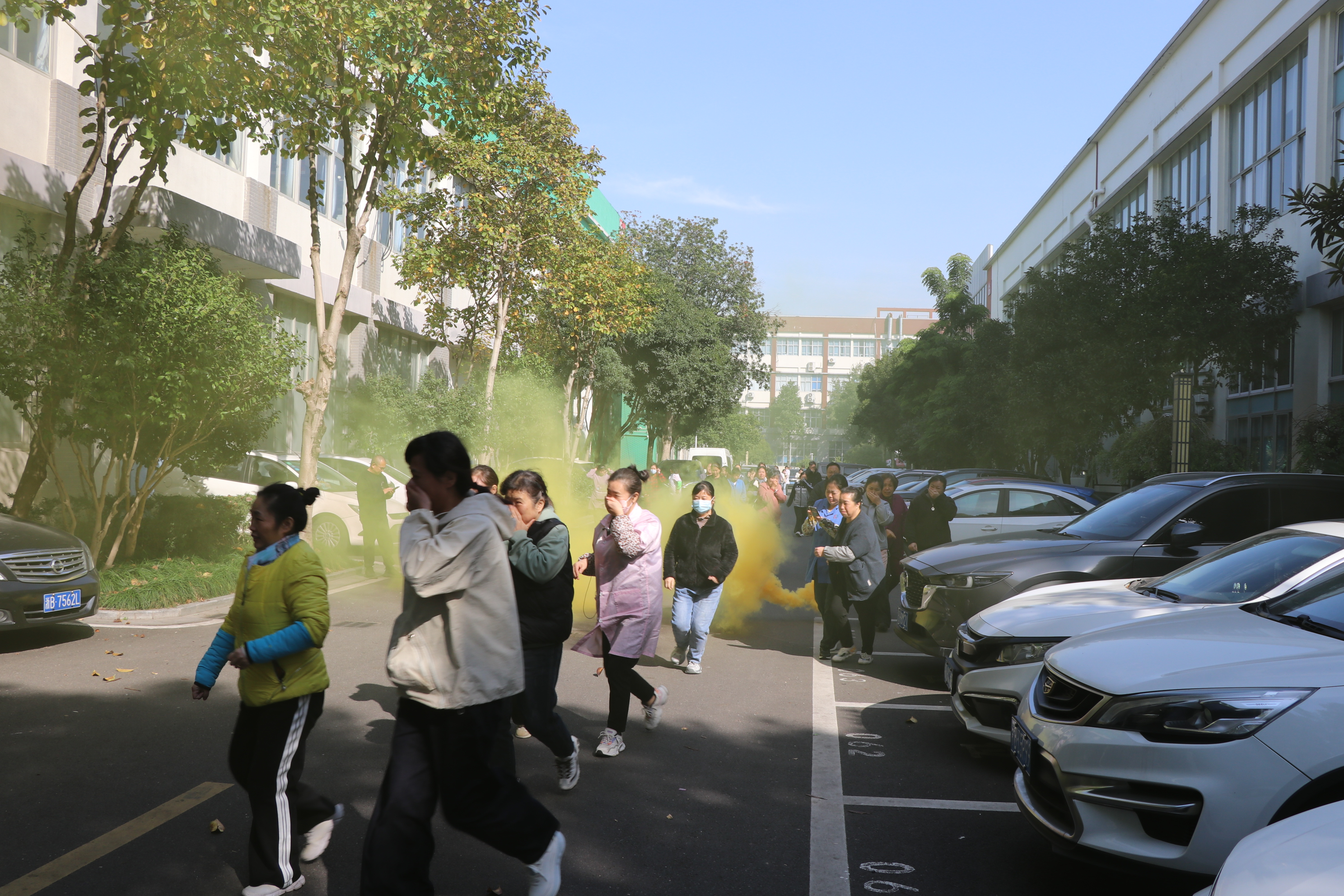19日上午10:30,随着消防警铃在各楼层同时响起,E、F、G及H幢西侧企业的员工迅速进入“应急状态”。大家沉着有序,沿指定疏散路线快速撤离,各企业安全管理员现场指挥,整个过程紧凑高效。